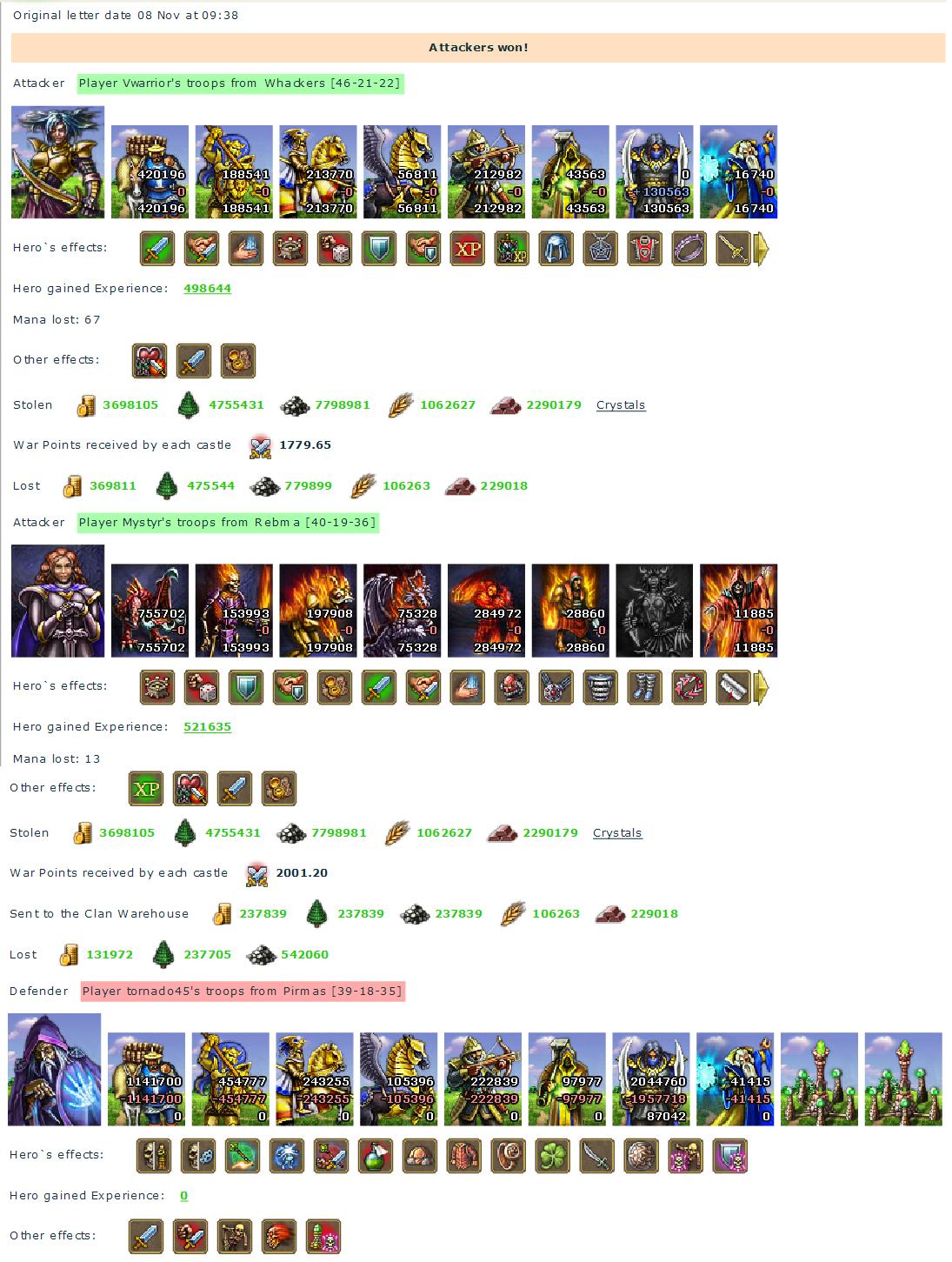 Further more the before and after shots of his resources show how devastating it can be when spells are used effectively. Losing literally millions of every resource in the course of a day.