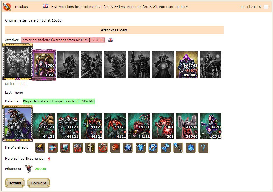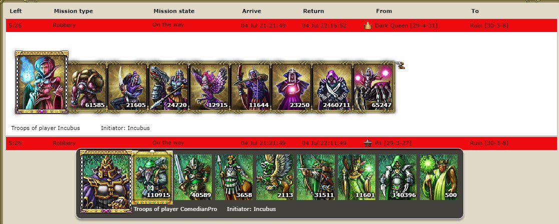 colonel2021 and Incubus, having spent all their accumulated treasures on summoning of the scrolls and artifacts, the allied kingdoms sent all available resources to help. colonel2021 and Incubus were working on a quick way to defeat the monsters, but they overcome big number of monsters.