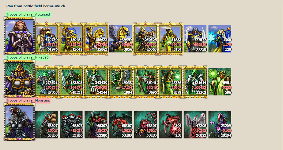 It was Saturday morning. It was pouring rain. The day promised to be long and boring. The ruler of Nika396 for morning coffee disassembled the mail. And suddenly at 8.20 there was a knock of hooves. This raced rider from the guild of researchers, he brought the news that in the neighboring kingdom in the magical forest found abode of monsters. Immediately spies were sent to find out the number of monsters. And the news they brought very upset the ruler Nika396. The forces were not equal. The spy report was sent to the nearest neighbors. The leader of the weide clan made preliminary calculations, but her hero was a great sage, not a warrior. It was decided to announce the gathering of all valiant troops. Court magicians began the rites of giving strength and courage to the troops. The great ruler Accursed from the city of Grail and his courageous hero Fundising could help in the fight against monsters. But here's the trouble he was on the hunt. The messenger raced as fast as he could. Gonets tracked down Accursed, the hero of Fundising hurried home he gathered all his army in the capital and activated the magic of the springboard transfer. His troops were strong and fast. The hour has come! I should have been in a hurry. The ruler of the strong BioHazard clan lived nearby. His researchers were very quick. He could find the abode of evil and assign all the glory to himself in the fight against monsters. The journey lasted 2 hours and all this time spies and visionaries watched the campaign. Rain and bad weather did not frighten the troops, they knew they were doing a good job. Subjects of all kingdoms prayed for a successful outcome of the company. It was a brutal battle! The hero of the monsters applied the magic of horror. The troops were disoriented, panic and confusion began. But experienced heroes gave a battle cry and returned confidence to their troops. The real carnage began. The mud of blood and sweat was all mixed. The ringing of swords could be heard in other kingdoms. Thousands of copies were broken. Tens of thousands of arrows were fired. Elves and humans fought like beasts. They fell without strength, again stood up and went forward on the enemy.